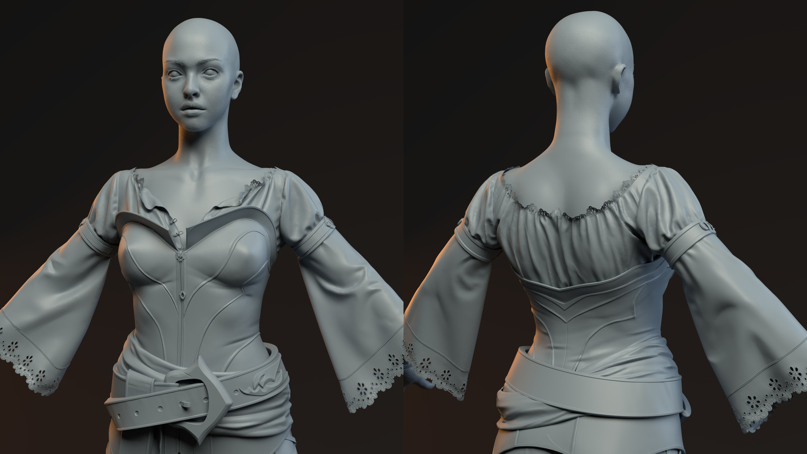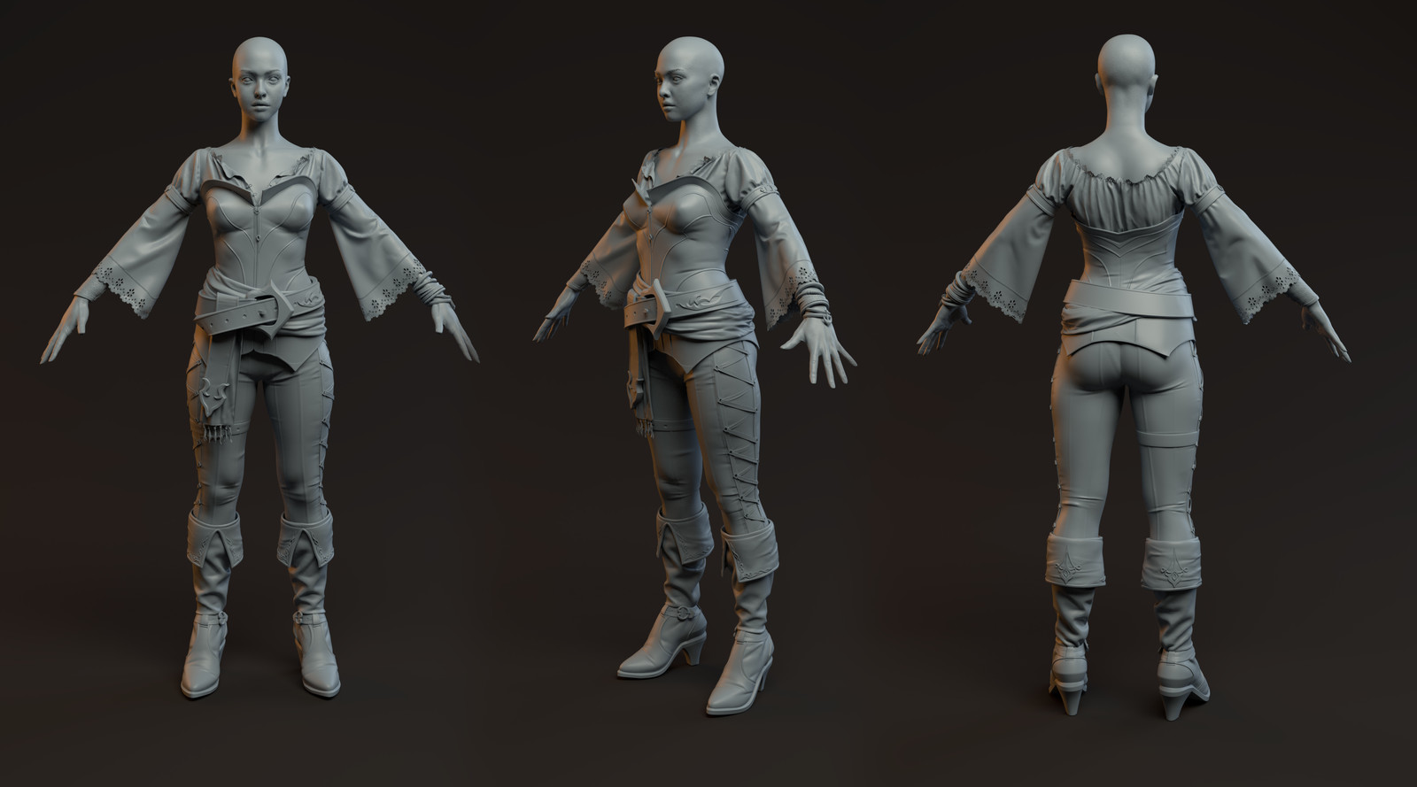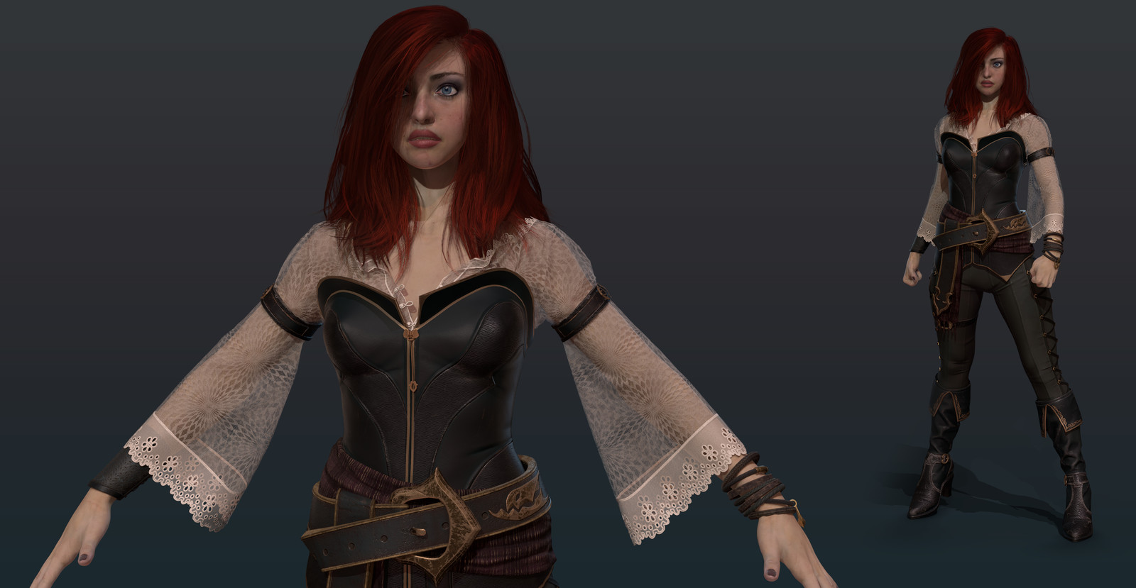 This project started as a personal study for using Texture Xyz and Mari. Having always been a fan of Riots game, I decided to work on fan art of Miss fortune from Jason Chan's League of Legends: Season Start 2018 "CLIMB" concepts. I did take the liberty to tweak the proportions and art style to realism. Either way, my goal was to create a realtime character in Marmoset toolbag and try out Texture xyz pipeline for the skin details/ textures. Apart from the skin most of the other textures were done via Substance Painter. I do have to give props to Travis Davids for the awesome fabric materials. I also used Aleksey Kudryavtsev and Maxime Conquy's substance materials for this project. The sculpt was pretty straightforward with the cloth being simulated with Marvelous designer. I used Rosemaryr's IMM Embroidery brush over the lace fabric. In regards to the eye set up in Marmoset, I used similar techniques that were shown at Unreal demo at GDC 2018.