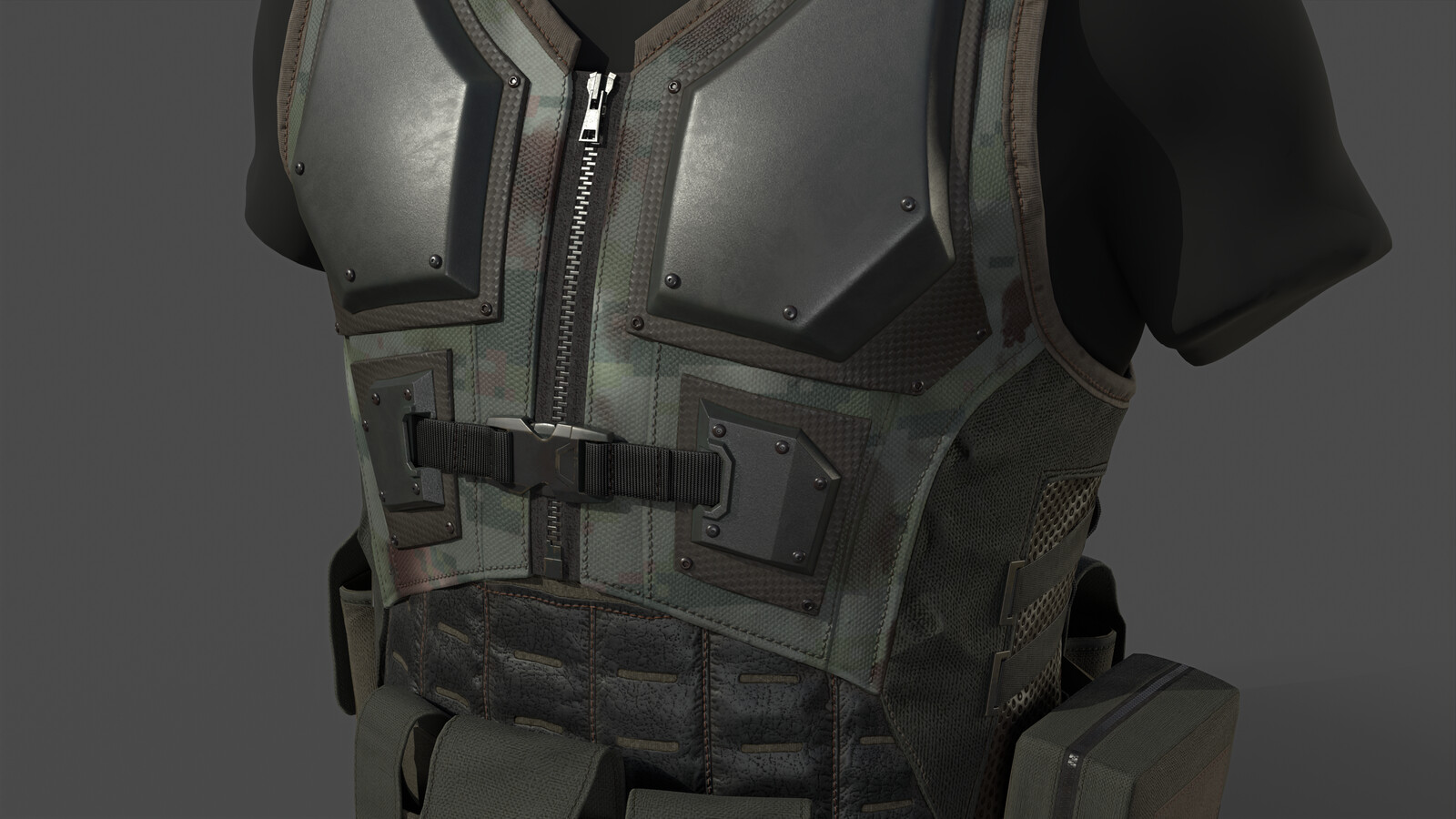 This is a personal piece done last year in between projects. I wanted to design a futuristic private military plate carrier that felt tactile and utilitarian. This is an in-game model with the pouches meant to be modular :) Hope you like it.