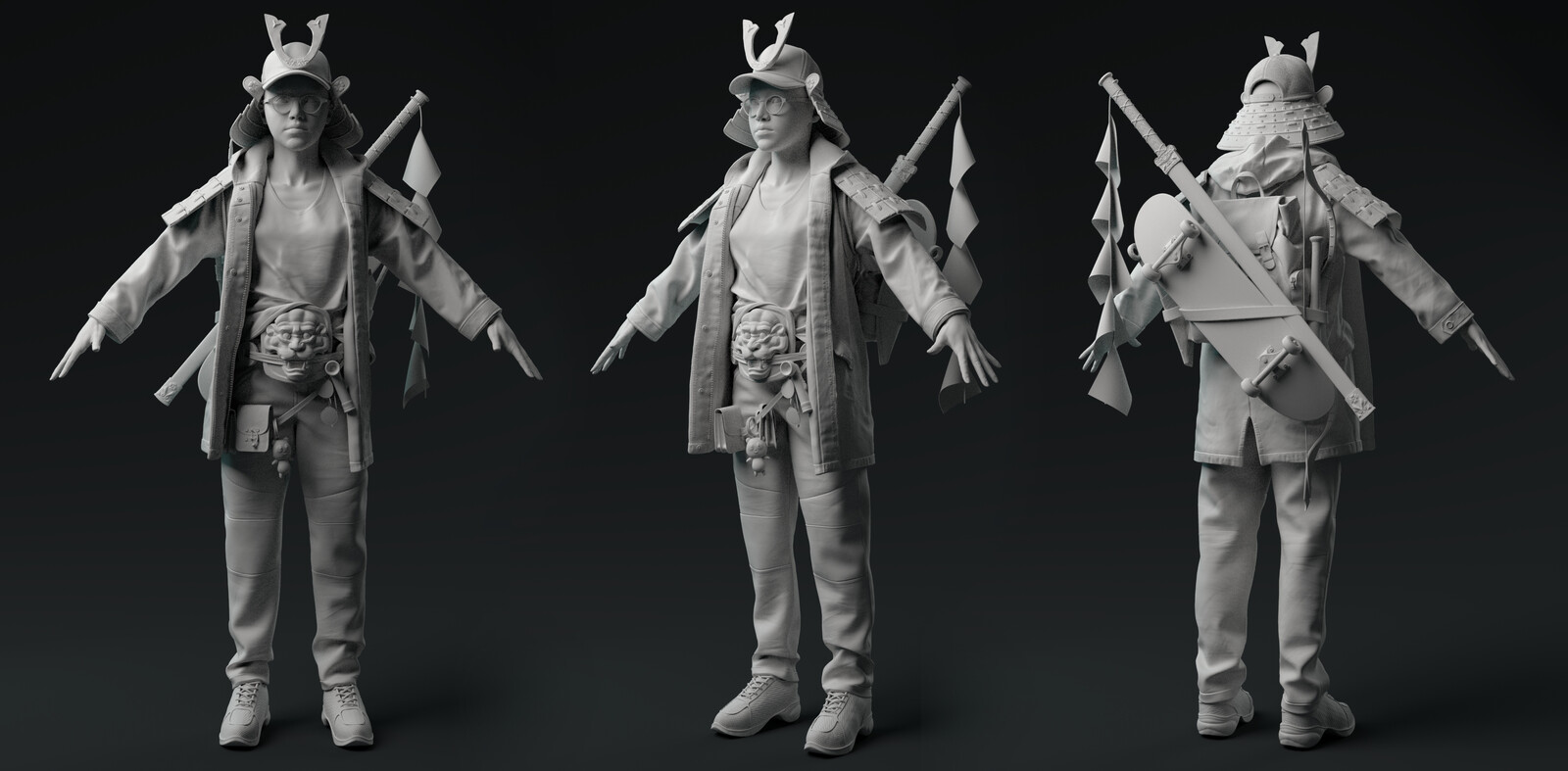Meet Katara, a character I designed wearing current/modern clothing mixed with medieval Armour/ Artefacts. She is an in-game character around 59k Tris with overall textures budgeted within an 8k map. In terms of art style, I went for the realism route on this one. The character is for the GGAC challenge which was the perfect time to challenge myself.